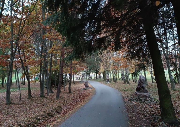 Za kościołem w Cierchach rozpoczyna się niezwykła droga krzyżowa, której stacje wykonano z masywnych głazów piaskowca.